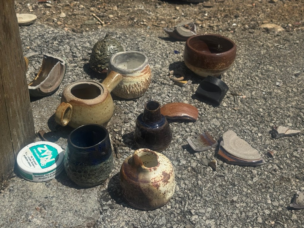 now their crooked bottlenecks and clumsy sloping bases house my toothbrushes, perfume samples, pencils, eyebrow spoolies, and tweezers